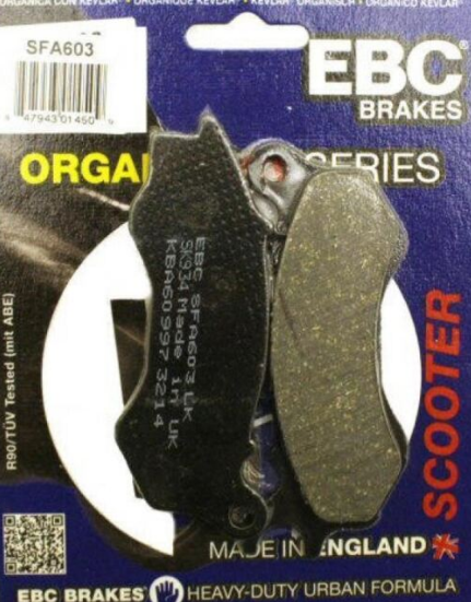 İngiliz malı SFA serisi organik scooter balatalarımız aramid liflerden üretilmektedir. SFA serisi 1. kalite organik balatalarımız kullanıcılara yüksek performans, ortalamanın üstünde kullanım ömrü ve disk yüzeyini koruyan özel bir yapı sunmaktadır. Her büyüklük ve tarzdaki scooterların fren sistemleri ile uyumludur. SFA serisi organik scooter balatalarımız EBC’nin İngiltere’deki fabrikalarında üretilmiştir. Ürettiğimiz bu balatalar, EBC firmasının kuruluşundan beri toplamda 35 milyonun üzerinde satış rakamına ulaşarak bu klasmanda en çok satan balata ünvanını rakiplerine kaptırmamıştır.